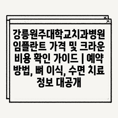 강릉원주대학교치과병원 임플란트 가격 및 크라운 비용 확인 가이드 | 예약 방법, 뼈 이식, 수면 치료 정보 대공개