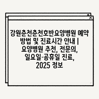 강원춘천춘천호반요양병원 예약 방법 및 진료시간 공지 | 요양병원 추천, 전연락, 일요일·공휴일 진료, 2025 정보 에 대해 자주 묻는 질문 TOP 5