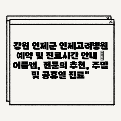 ✅ 인제고려병원의 진료시간과 예약 방법을 지금 확인해보세요.
