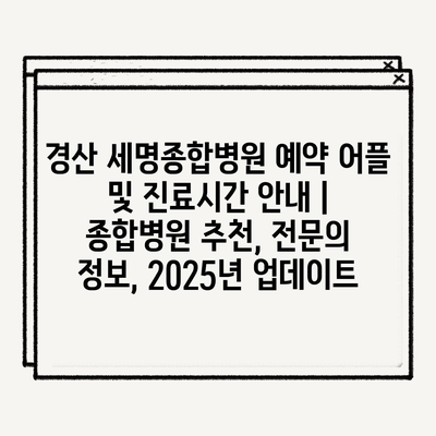 ✅ 경산 세명종합병원의 진료시간과 예약 방법을 상세히 알아보세요.