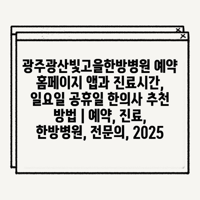 광주광산빛고을한방병원 예약 홈페이지 앱과 진료시간, 일요일 공휴일 한의사 추천 방법 | 예약, 진료, 한방병원, 전연락, 2025 에 대해 자주 묻는 질문 TOP 5