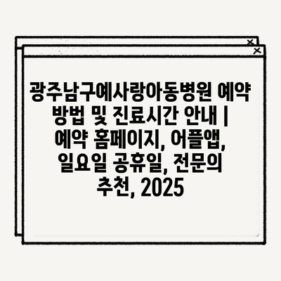 광주남구예사랑아동병원 예약 방법 및 진료시간 공지 | 예약 홈페이지, 어플앱, 일요일 공휴일, 전연락 추천, 2025 에 대해 자주 묻는 질문 TOP 5