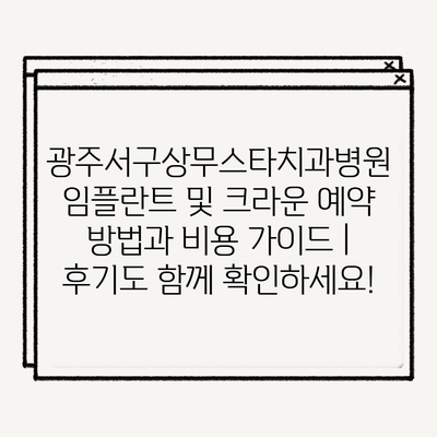 광주서구상무스타치과병원 임플란트 및 크라운 예약 방법과 비용 설명서 | 후기도 함께 확인하세요!