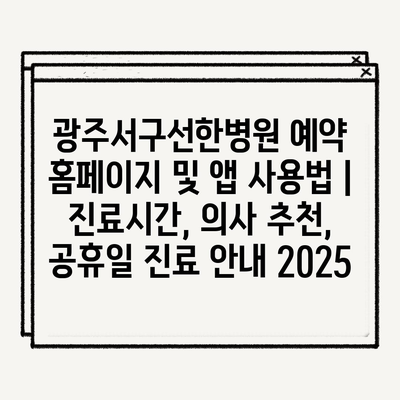 광주서구선한병원 예약 홈페이지 및 앱 사용법 | 진료시간, 의사 추천, 공휴일 진료 안내 2025