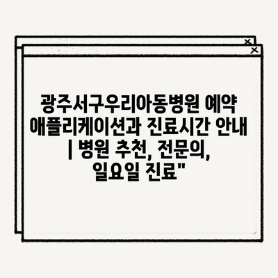 광주서구우리아동병원 예약 애플리케이션과 진료시간 공지 | 병원 추천, 전연락, 일요일 진료에 대해 자주 묻는 질문 TOP 5