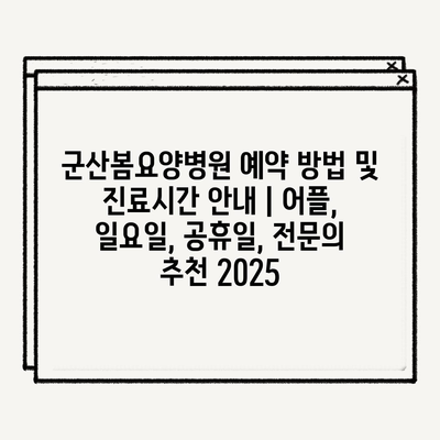 군산봄요양병원 예약 방법 및 진료시간 공지 | 어플, 일요일, 공휴일, 전연락 추천 2025에 대해 자주 묻는 질문 TOP 5