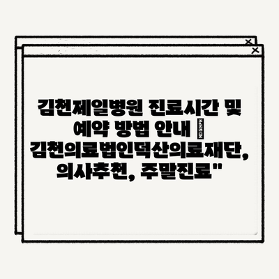 ✅ 김천제일병원의 진료시간과 예약 방법을 자세히 알아보세요.