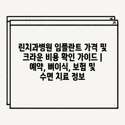 린치과병원 임플란트 가격 및 크라운 비용 확인 설명서 | 예약, 뼈이식, 보험 및 수면 치료 정보에 대해 자주 묻는 질문 TOP 5