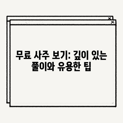 무료 사주 보기: 깊이 있는 풀이와 유용한 팁