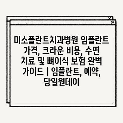 미소플란트치과병원 임플란트 가격, 크라운 비용, 수면 치료 및 뼈이식 보험 완벽 가이드 | 임플란트, 예약, 당일원데이