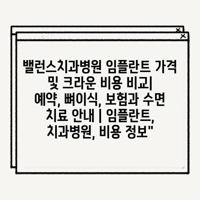 밸런스치과병원 임플란트 가격 및 크라운 비용 비교| 예약, 뼈이식, 보험과 수면 치료 공지 | 임플란트, 치과병원, 비용 정보
