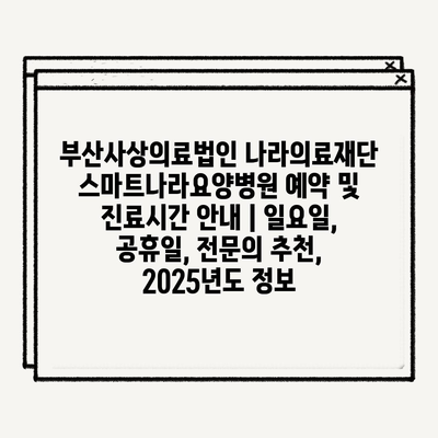 부산사상의료법인 나라의료재단 스마트나라요양병원 예약 및 진료시간 안내 | 일요일, 공휴일, 전문의 추천, 2025년도 정보