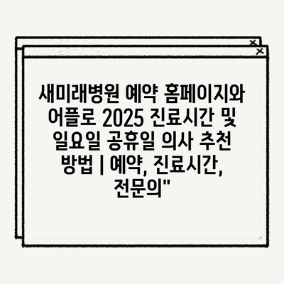 새미래병원 예약 홈페이지와 어플로 2025 진료시간 및 일요일 공휴일 의사 추천 방법 | 예약, 진료시간, 전문의”