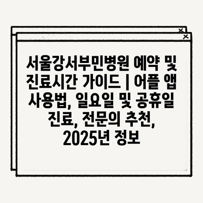 서울강서부민병원 예약 및 진료시간 설명서 | 어플 앱 사용법, 일요일 및 공휴일 진료, 전연락 추천, 2025년 정보 에 대해 자주 묻는 질문 TOP 5