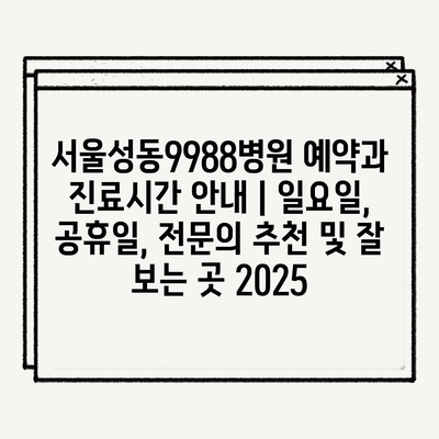 ✅ 서울성동9988병원에서의 진료 정보와 예약 방법을 알아보세요.