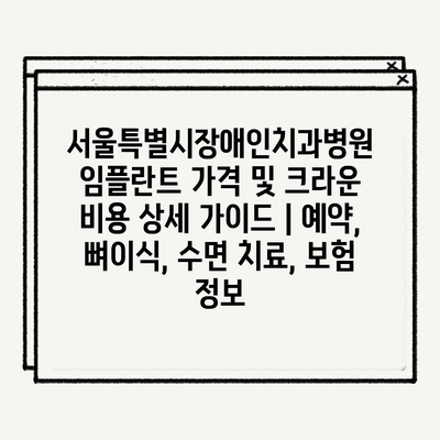 서울특별시장애인치과병원 임플란트 가격 및 크라운 비용 상세 설명서 | 예약, 뼈이식, 수면 치료, 보험 정보