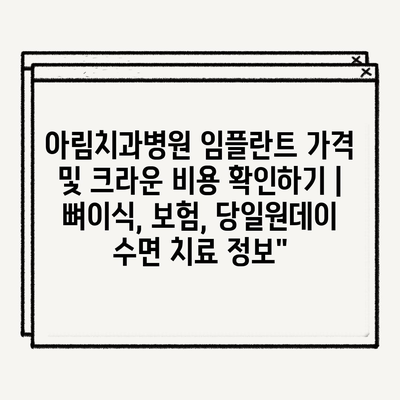 아림치과병원 임플란트 가격 및 크라운 비용 확인하기 | 뼈이식, 보험, 당일원데이 수면 치료 정보