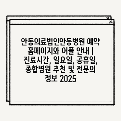 안동의료법인안동병원 예약 홈페이지와 어플 공지 | 진료시간, 일요일, 공휴일, 종합병원 추천 및 전연락 정보 2025는 여러분의 건강을 지키기 위한 좋은 선택입니다.