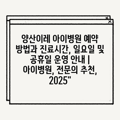 ✅ 양산이레 아이병원의 예약 방법과 진료시간을 자세히 알아보세요.