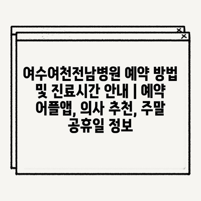 여수여천전남병원 예약 방법 및 진료시간 공지 | 예약 어플앱, 의사 추천, 주말 공휴일 정보 에 대해 자주 묻는 질문 TOP 5