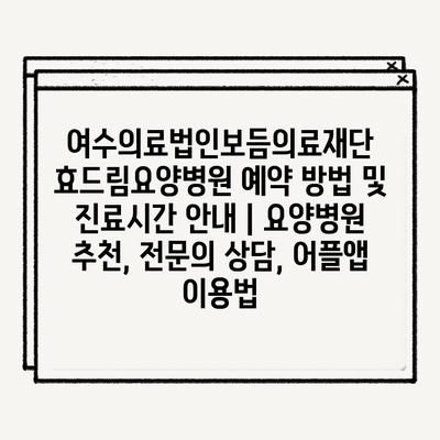여수의료법인보듬의료재단의 요양병원 예약 절차를 지금 알아보세요!