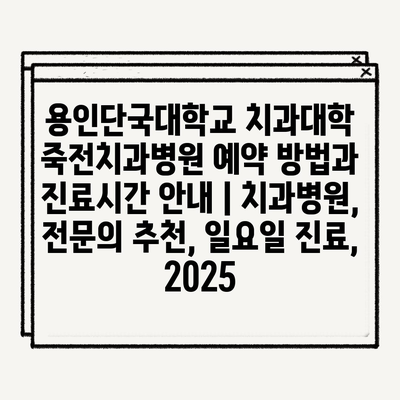 용인단국대학교 치과대학 죽전치과병원 예약 방법과 진료시간 안내 | 치과병원, 전문의 추천, 일요일 진료, 2025