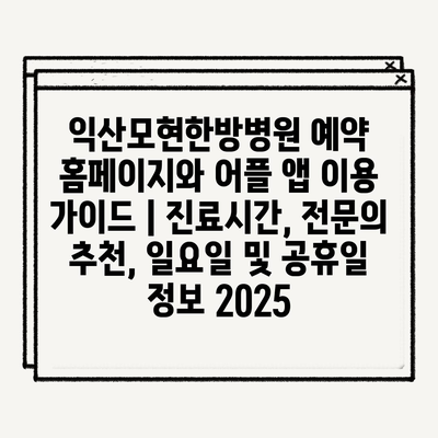 익산모현한방병원 예약 홈페이지와 어플 앱 이용 설명서 | 진료시간, 전연락 추천, 일요일 및 공휴일 정보 2025에 대해 소개합니다.