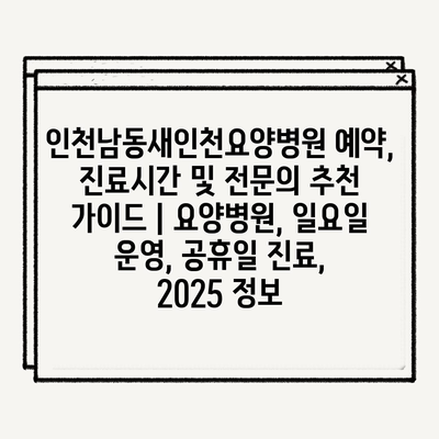 인천남동새인천요양병원 예약, 진료시간 및 전문의 추천 가이드 | 요양병원, 일요일 운영, 공휴일 진료, 2025 정보