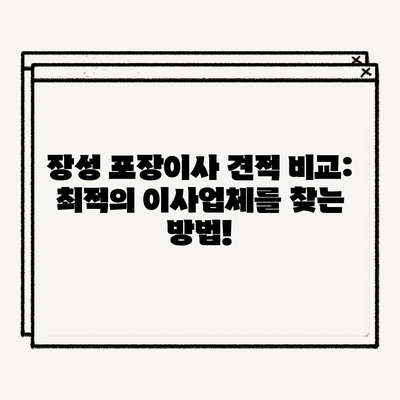 💡 장성 포장이사 업체의 서비스와 가격을 비교해 보세요! 💡