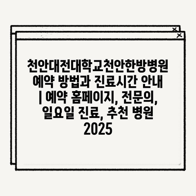 천안대전대학교천안한방병원 예약 방법과 진료시간 공지 | 예약 홈페이지, 전연락, 일요일 진료, 추천 병원 2025 에 대해 자주 묻는 질문 TOP 5