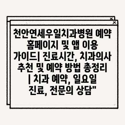 천안연세우일치과병원 예약 홈페이지 및 앱 이용 설명서| 진료시간, 치과의사 추천 및 예약 방법 총정리 | 치과 예약, 일요일 진료, 전연락 상담” 에 대해 자주 묻는 질문 TOP 5