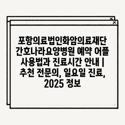 포항의료법인화암의료재단 간호나라요양병원 예약 어플 사용법과 진료시간 안내 | 추천 전문의, 일요일 진료, 2025 정보