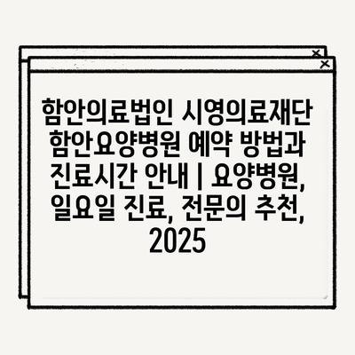 함안의료법인 시영의료재단 함안요양병원 예약 방법과 진료시간 공지 | 요양병원, 일요일 진료, 전연락 추천, 2025 에 대해 자주 묻는 질문 TOP 5