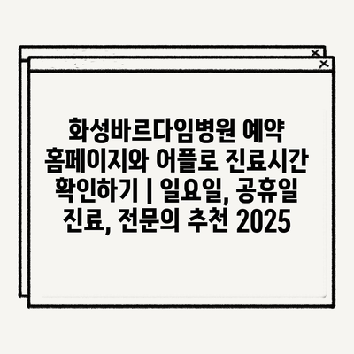 화성바르다임병원 예약 홈페이지와 어플로 진료시간 확인하기 | 일요일, 공휴일 진료, 전연락 추천 2025 에 대해 자주 묻는 질문 TOP 5