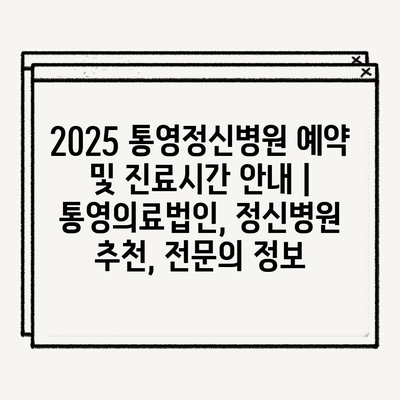 2025 통영정신병원 예약 및 진료시간 공지 | 통영의료법인, 정신병원 추천, 전연락 정보