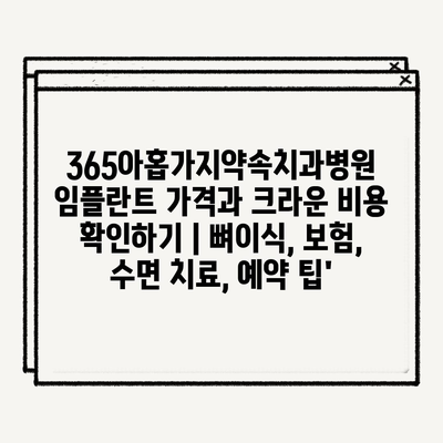 365아홉가지약속치과병원 임플란트 가격과 크라운 비용 확인하기 | 뼈이식, 보험, 수면 치료, 예약 팁