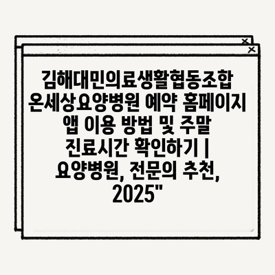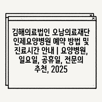 김해의료법인 오남의료재단 인제요양병원 예약 방법 및 진료시간 안내 | 요양병원, 일요일, 공휴일, 전문의 추천, 2025