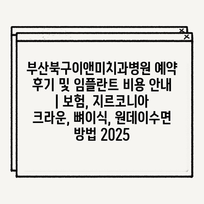 부산북구이앤미치과병원 예약 후기 및 임플란트 비용 안내 | 보험, 지르코니아 크라운, 뼈이식, 원데이수면 방법 2025