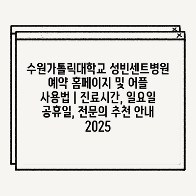 수원가톨릭대학교 성빈센트병원 예약 홈페이지 및 어플 사용법 | 진료시간, 일요일 공휴일, 전문의 추천 안내 2025