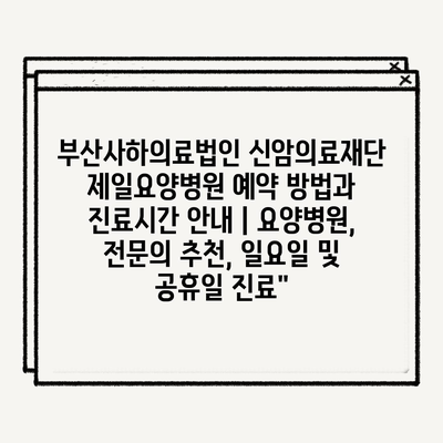 부산사하의료법인 신암의료재단 제일요양병원 예약 방법과 진료시간 안내 | 요양병원, 전문의 추천, 일요일 및 공휴일 진료”
