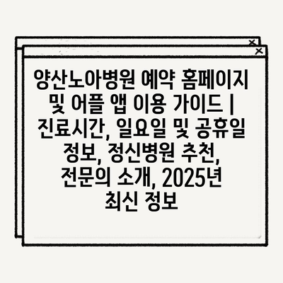 양산노아병원 예약 홈페이지 및 어플 앱 이용 가이드 | 진료시간, 일요일 및 공휴일 정보, 정신병원 추천, 전문의 소개, 2025년 최신 정보