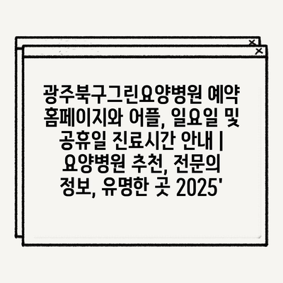 광주북구그린요양병원 예약 홈페이지와 어플, 일요일 및 공휴일 진료시간 안내 | 요양병원 추천, 전문의 정보, 유명한 곳 2025′