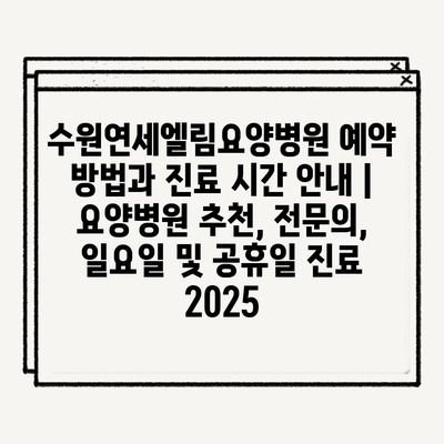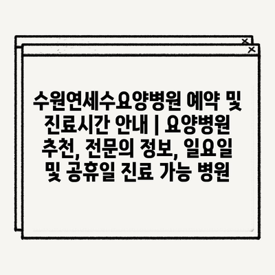 수원연세수요양병원 예약 및 진료시간 안내 | 요양병원 추천, 전문의 정보, 일요일 및 공휴일 진료 가능 병원