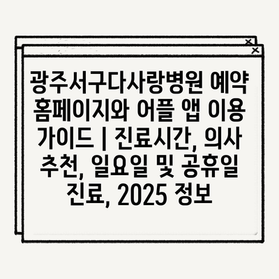 광주서구다사랑병원 예약 홈페이지와 어플 앱 이용 가이드 | 진료시간, 의사 추천, 일요일 및 공휴일 진료, 2025 정보