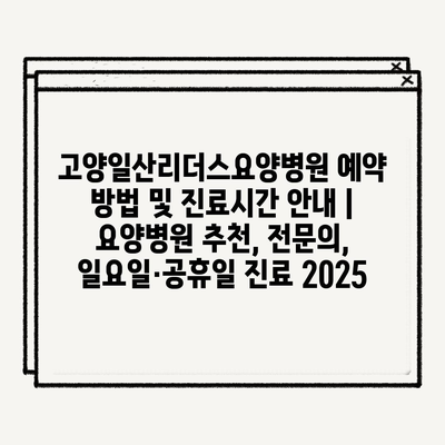고양일산리더스요양병원 예약 방법 및 진료시간 안내 | 요양병원 추천, 전문의, 일요일·공휴일 진료 2025