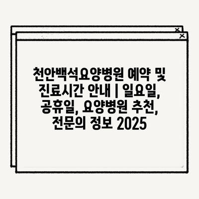 천안백석요양병원 예약 및 진료시간 안내 | 일요일, 공휴일, 요양병원 추천, 전문의 정보 2025