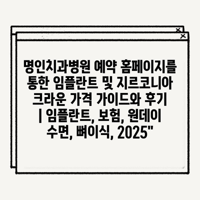 명인치과병원 예약 홈페이지를 통한 임플란트 및 지르코니아 크라운 가격 가이드와 후기 | 임플란트, 보험, 원데이 수면, 뼈이식, 2025″