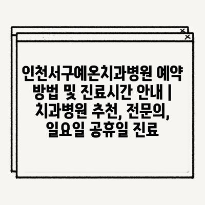인천서구예온치과병원 예약 방법 및 진료시간 안내 | 치과병원 추천, 전문의, 일요일 공휴일 진료