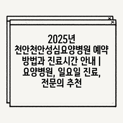 2025년 천안천안성심요양병원 예약 방법과 진료시간 안내 | 요양병원, 일요일 진료, 전문의 추천
