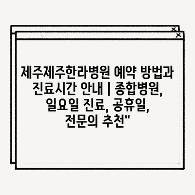 제주제주한라병원 예약 방법과 진료시간 안내 | 종합병원, 일요일 진료, 공휴일, 전문의 추천”